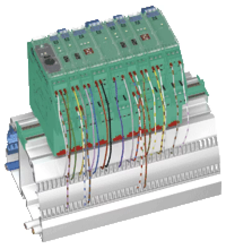 Профильная рейка с UPR-03- * вставкой, 3 проводника, проводящая гребень полевая сторона синяя